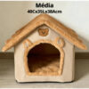 O formato de casinha cria um ambiente fechado que ajuda a reduzir o estresse e proporciona um descanso mais tranquilo. Ideal para pets que gostam de se aninhar.