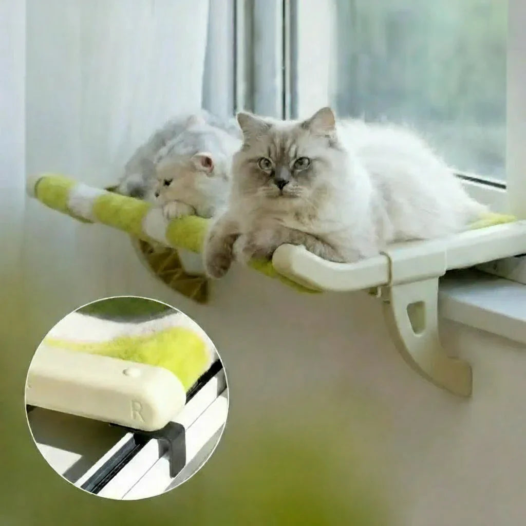 Gatos adoram altura, visão ampla e lugares frescos. Por isso, essa cama suspensa é perfeita para janelas: o tecido é respirável, inodoro e removível para lavagem, garantindo bem-estar diário e higiene fácil.