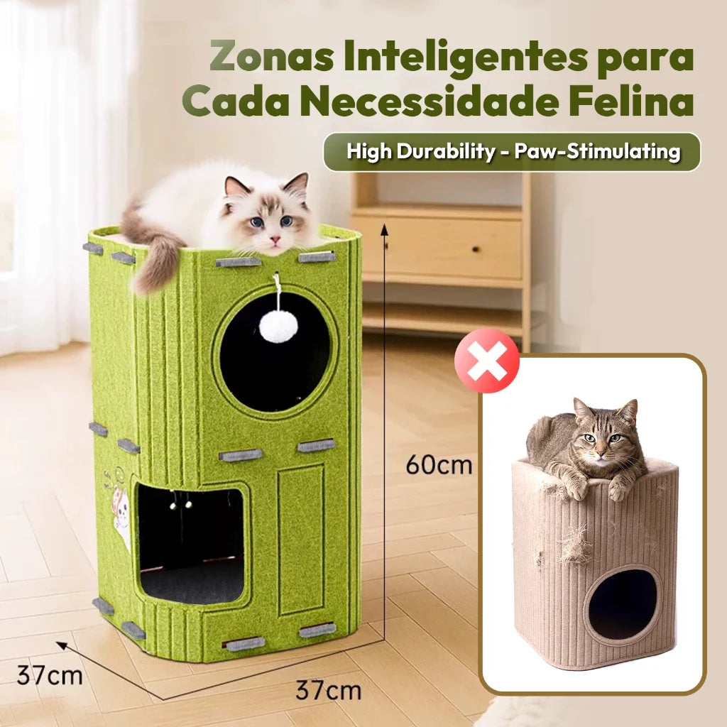Seu pet precisa gastar energia, mas você quer proteger seus móveis? A Casa em Feltro Multicamadas com Arranhador Snouty™ é a solução perfeita para unir diversão, descanso e proteção em um único espaço vertical.
