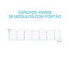 - 6 módulos + portão: 82 cm (A) x 450 cm (L)