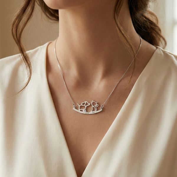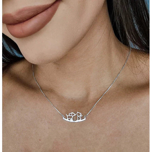 Colar Feminino em Prata 925 com Pingente de Cachorro e Gato – Lupzy™ | Amor Pet Eterno