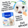 Encaixe a dedeira no dedo indicador, passe suavemente nas áreas manchadas ao redor dos olhos e descarte após o uso. Recomenda-se o uso diário para melhores resultados. 🐕🦺