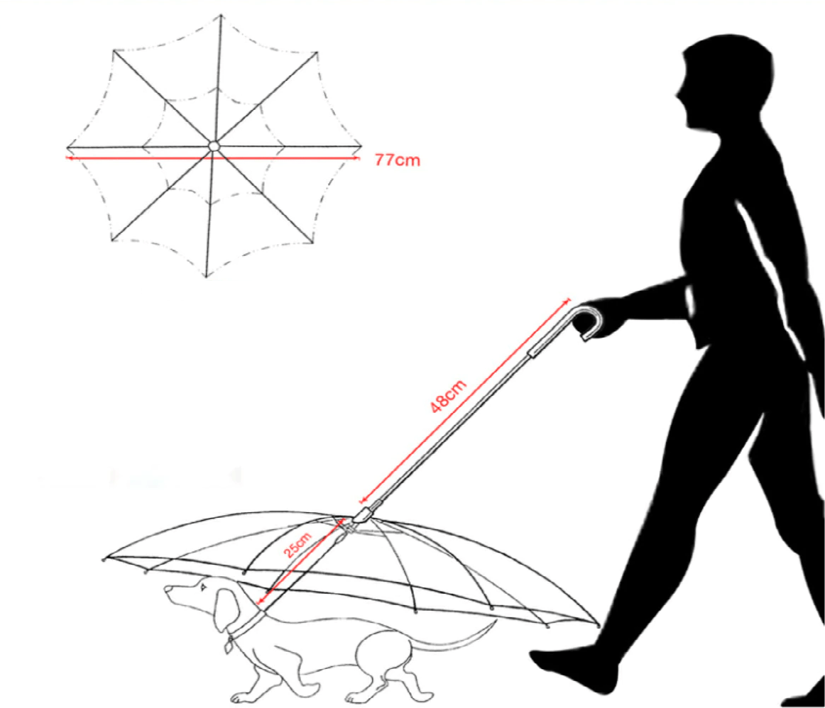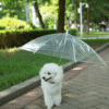 A guia vem com um guarda-chuva transparente que protege seu pet da chuva, mantendo-o seco e confortável. A alça é resistente e fácil de segurar, ideal para passeios sem preocupações.