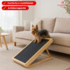 Fabricada em madeira de pinus de alta qualidade com acabamento em verniz cerejeira, a rampa combina resistência, design sofisticado e durabilidade. A superfície emborrachada antiderrapante evita escorregões e protege seu pet durante toda a subida e descida.