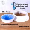A Tigela Gelada para Cães e Gatos é a solução perfeita para manter a água do seu pet gelada por até 8 horas. Com pote interno de gel refrigerante, basta colocá-lo no freezer por 2 horas antes do uso, e pronto: seu pet terá água fresquinha e saudável durante todo o dia.
